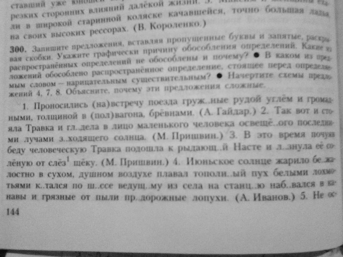 Упражнение 300.Подчеркнуть главные члены предложения,определения,обособленные определения.P.S.: задание в учебнике не надо выполнять!!!!