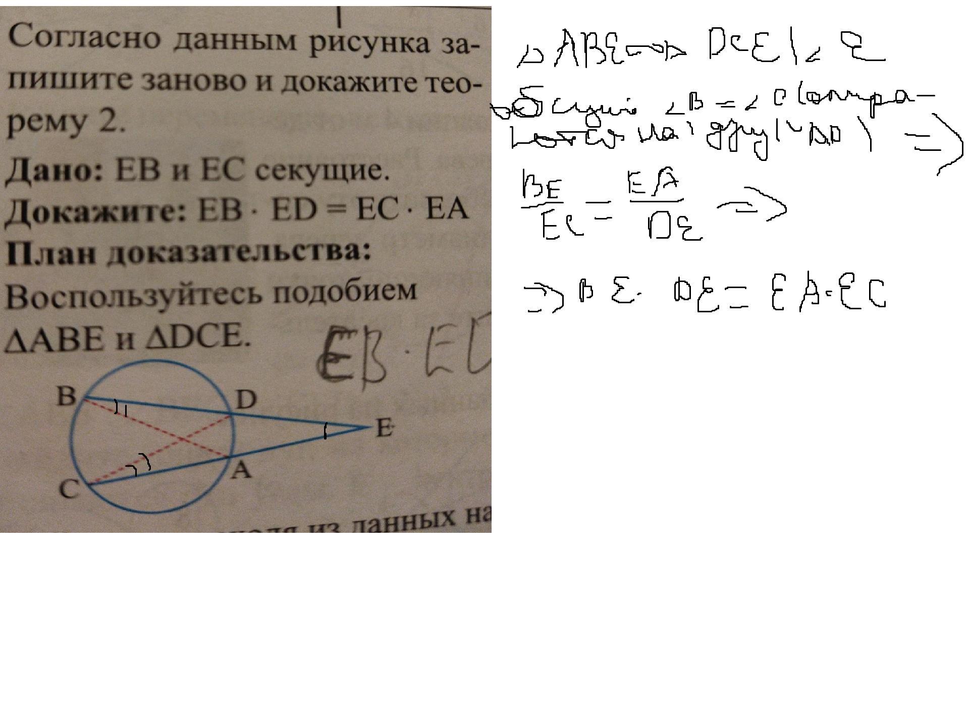 ABE u DCE подобны по двум углам, тогда EA/ED=EB/EC