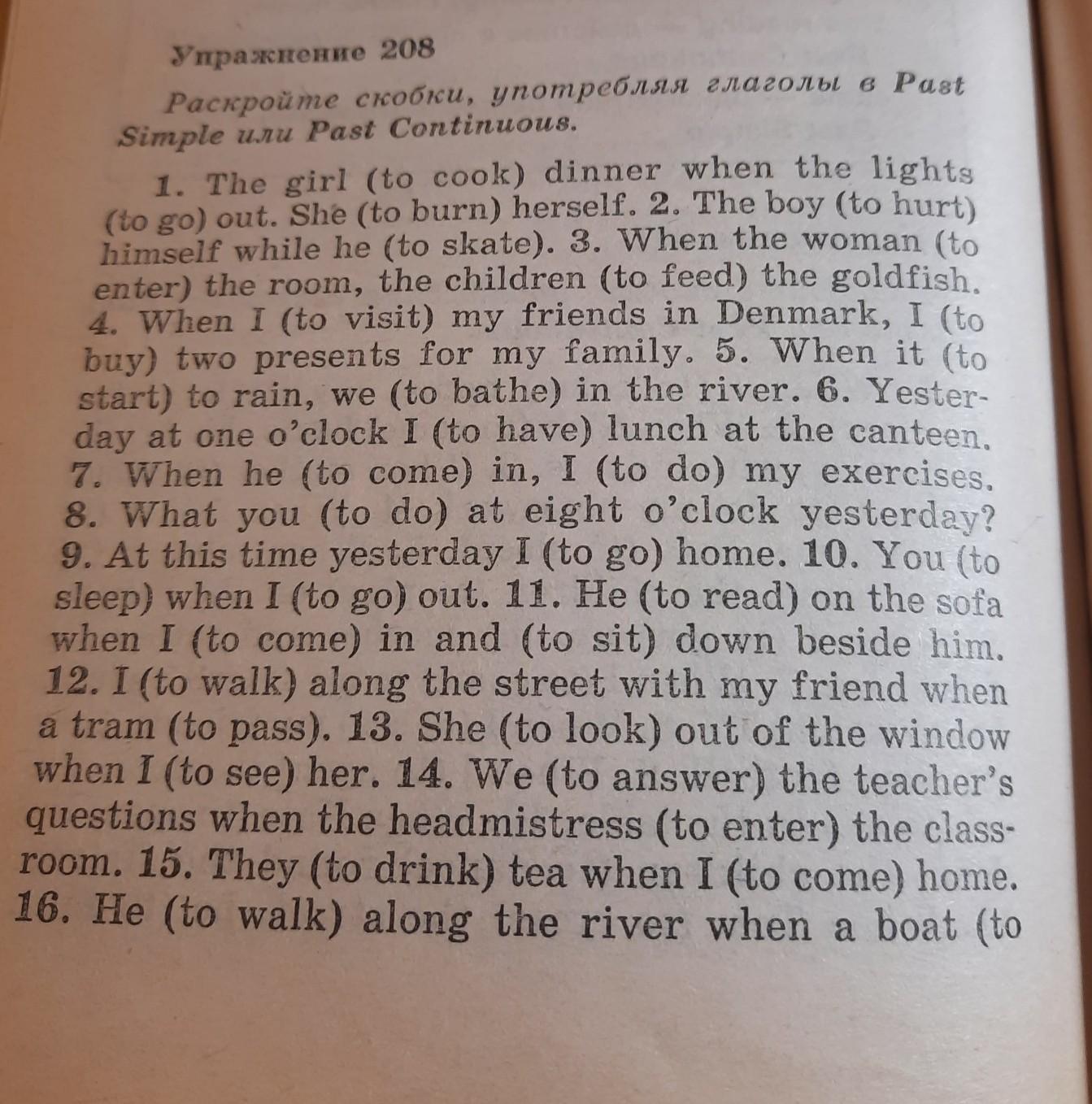 4) was visiting, bought 5) started, were bathing 6) was having 7) came, was doing 8) were you doing 9) was going 10) were sleeping, went out 11) was reading, came, sat 12) was walking, passed 13) was looking, saw 14) were answering, entered 15) were drinking, came