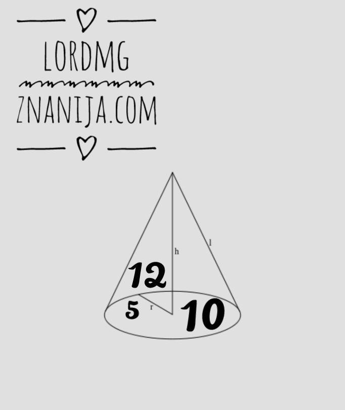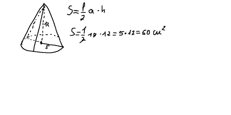 радіус основи конуса дорівнює 5 см, а його висота — 12 см. Знайти площу