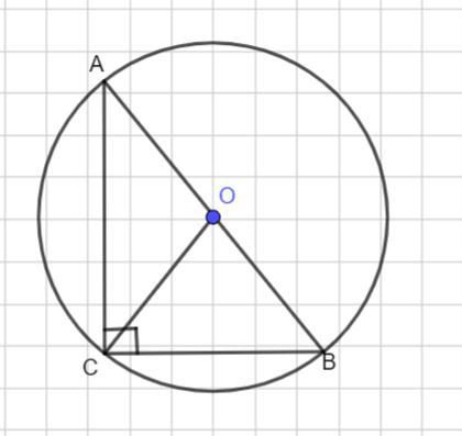 Так как ΔАВС вписан в окружность, то окружность описана около прямоугольного треугольника и ее центр находится в середине гипотенузы.