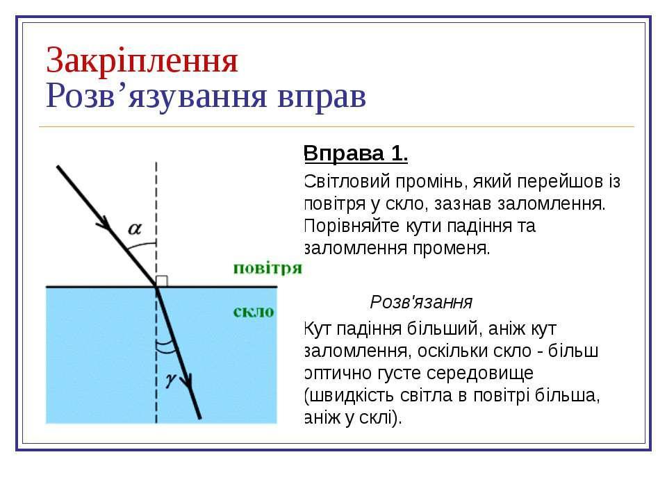 Світловий промінь пройшов із повітря в кришталь. Порівняйте кути падіння , відбивання і заломлення променя,