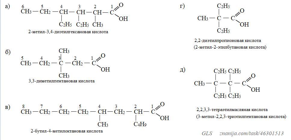 3) называется самая длинная углеродная цепь, добавляется суффикс -овая и слово кислота. Для основы может использоваться тривиальное название.
