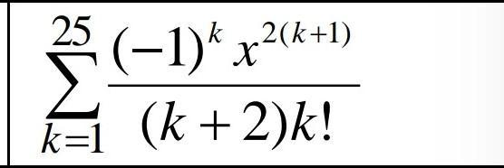 summa += (((-1)**k)*x**(2*(k+1)))/((k+2)*math.factorial(k))