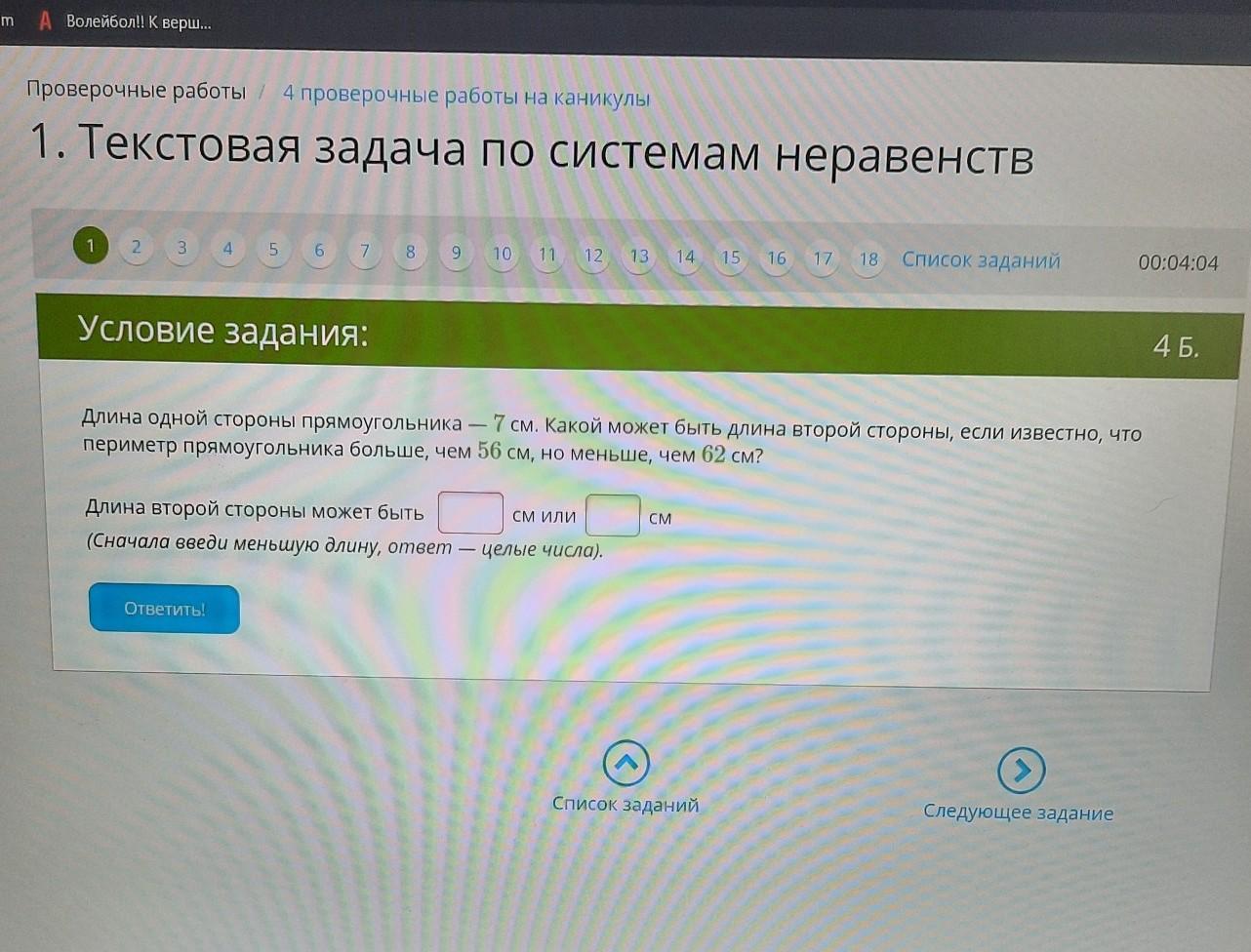 Ответ: длина второй стороны может быть 22 см или 23 см
