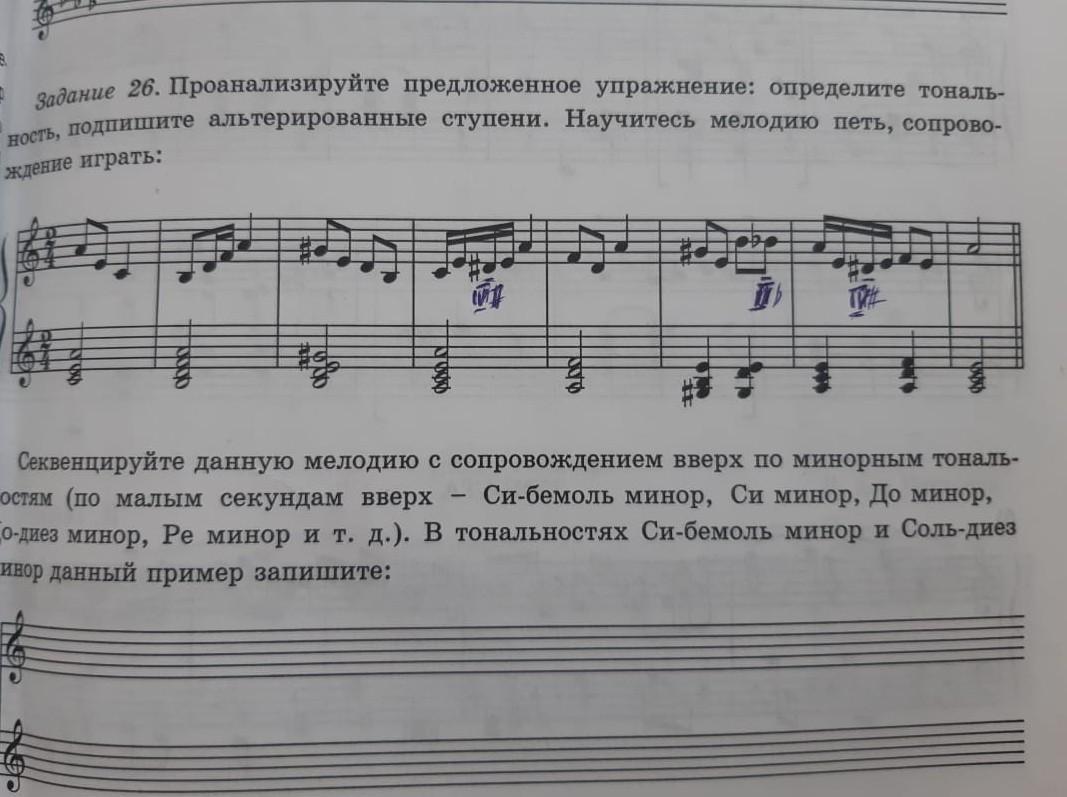 Ответ: Тональность: Ля минор Альтернативные ступени уже подписаны на фото 4 ре диез 2 си бемоль 4 ре диез