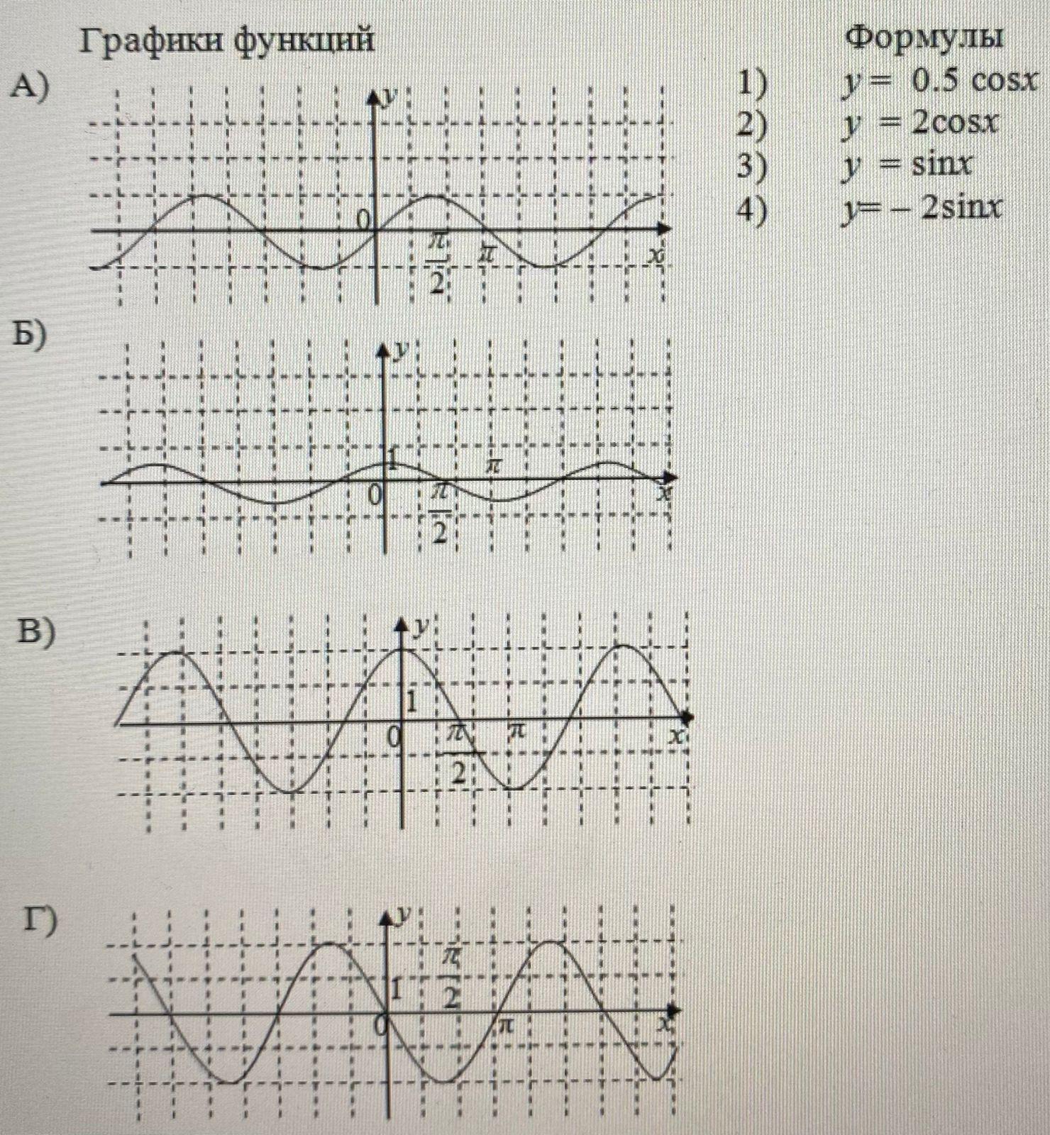Установите соответствие между графиками функций, изображенными на рисунках, и формулами, которыми они заданы: для каждой позиции из первого столбца подберите соответствующую позицию из второго столбца.