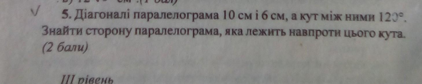Дано: КМРТ - паралелограм, КР=10 см, МТ=6 см, ∠МОР=120°. Знайти МР.