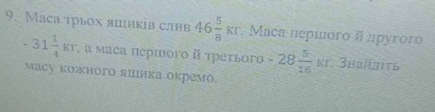 маса 1 ящ: (31 ціла 1/4+28 цілих 5/16)- 46 цілих 5/8= 12 ціл 15/16
