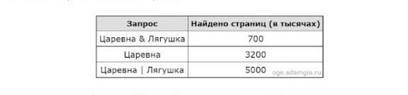 В таблице приведены запросы и количество найденных по ним страниц некоторого сегмента сети Интернет