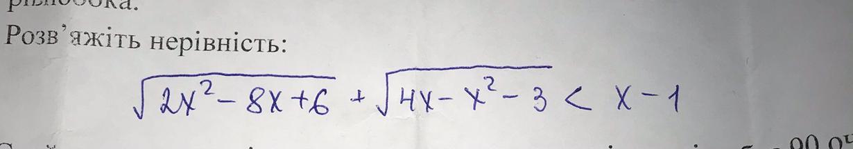 ( под корнем (2x^2 - 8х + 6) + под корнем ( 4х - х^2 - 3) < х - 1 )