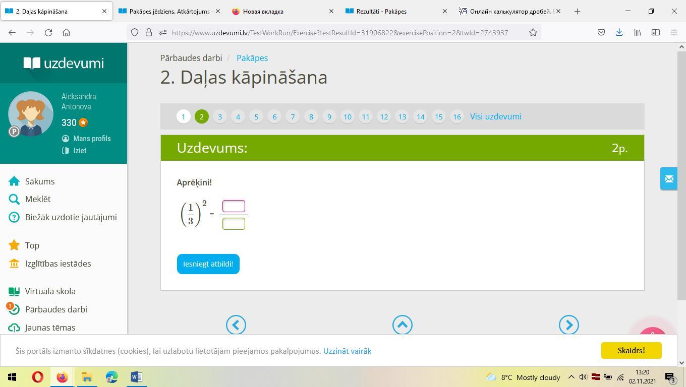 будет 1/3•1/3=1/9 (пишем все дробью)