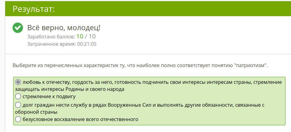 Выберите из перечисленных характеристик ту, что наиболее полно соответствует понятию "патриотизм".