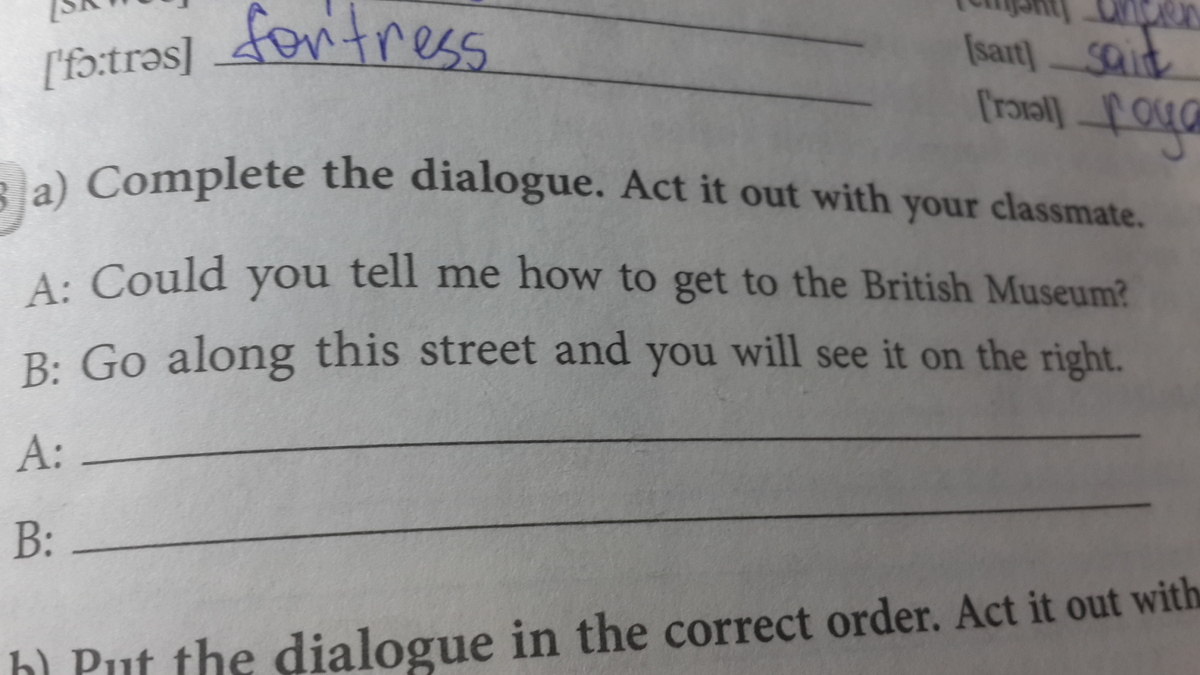 Complete the dialogue. Act it out with your classmate.Complete the dialogue. Act it out with your classmate.