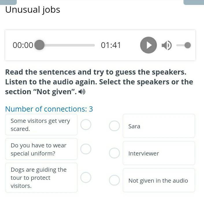 read the sentences and to try to guess the speakers. Listen to the audio again. Select the speakers or the section Not given