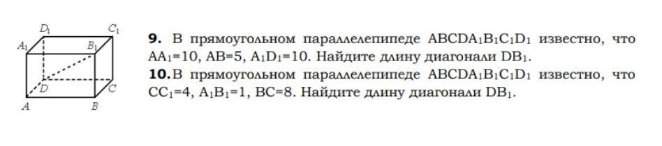 DB = корень(AB^2+AD^2)=корень(5^2+10^2)=корень(125)