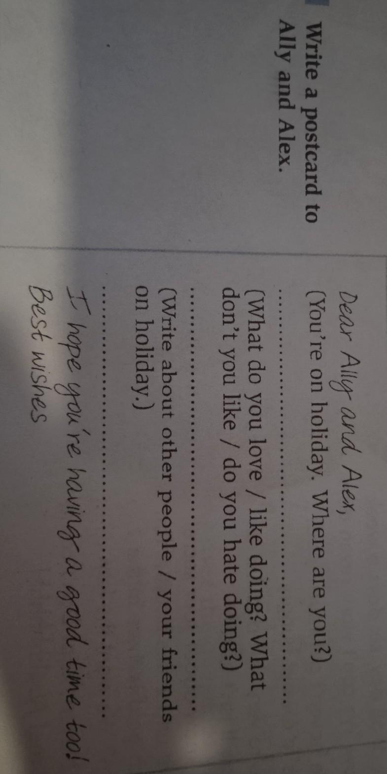 I am in London for my holiday, i love walking down the street and watch people with fansion clothes, and i love watching the sun set on the beach, but i do not like the birds here, because they took my bread once.