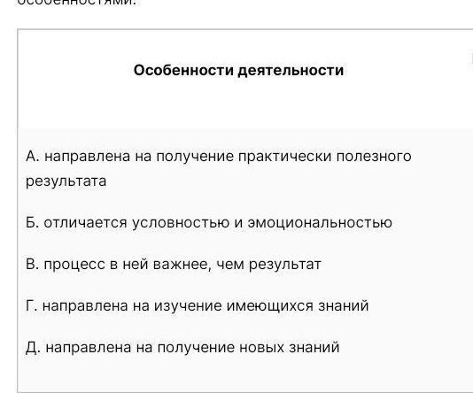 Я просто соотнесла виды деятельности с соответствующей буквой, все очень просто;)