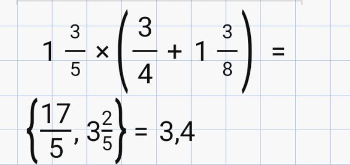 17/5 бо 3/4+13/8=17/8*8/5=17/5