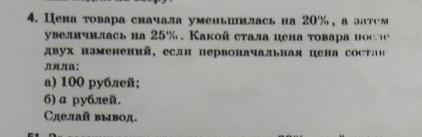 0,8a + (0,8a · 0,25) = 0,8a + 0,2a = 1a = a (руб.) – конечная цена товара