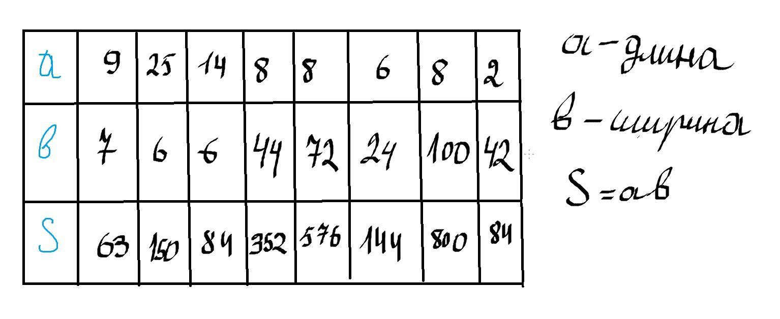 В задаче вы дали 8 чисел для длины а для ширины 9 чисел поэтому я не написал число 60