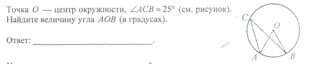 угол АОВ равен 50 градусам