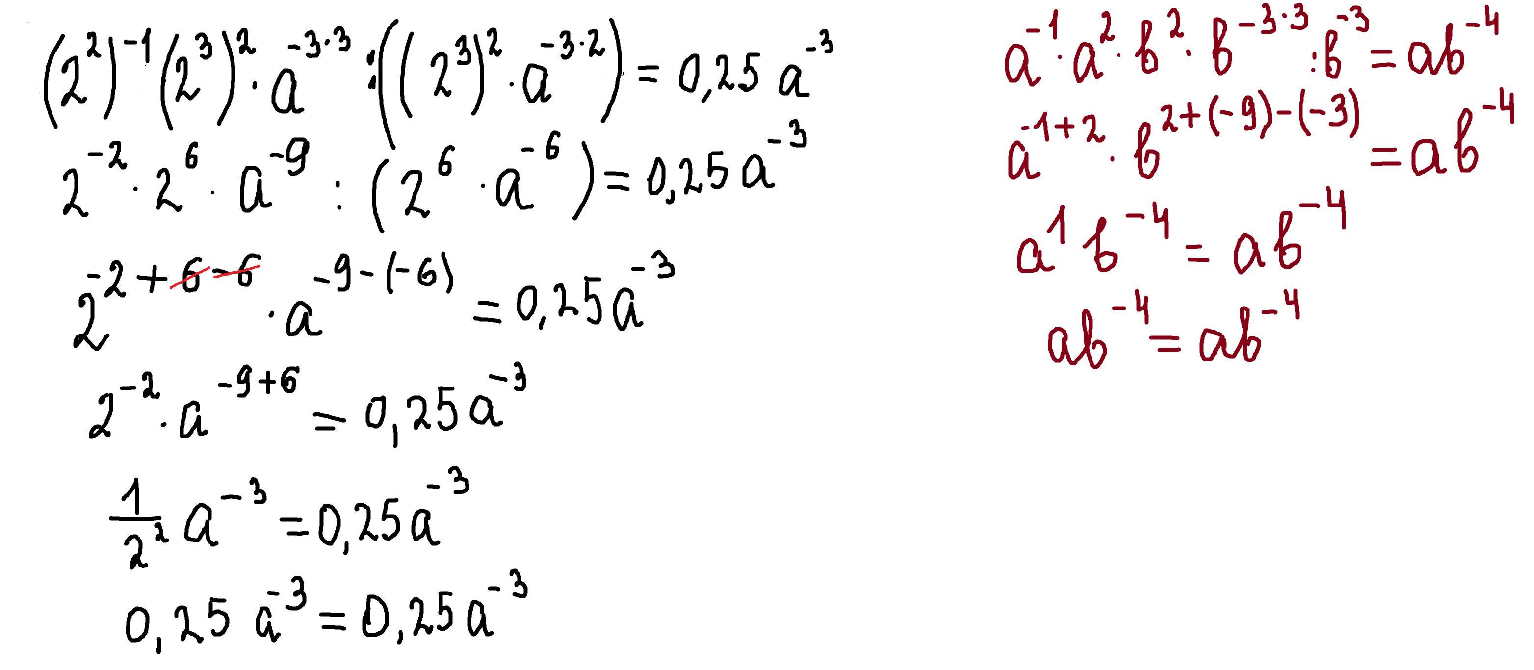 при умножении степеней с одинаковым основанием показатели складываются,при делении-вычитаются.при возведении степени в степень показатели перемножаются.выполняем преобразование в левой части,до тех пор пока она не станет равной правой части.