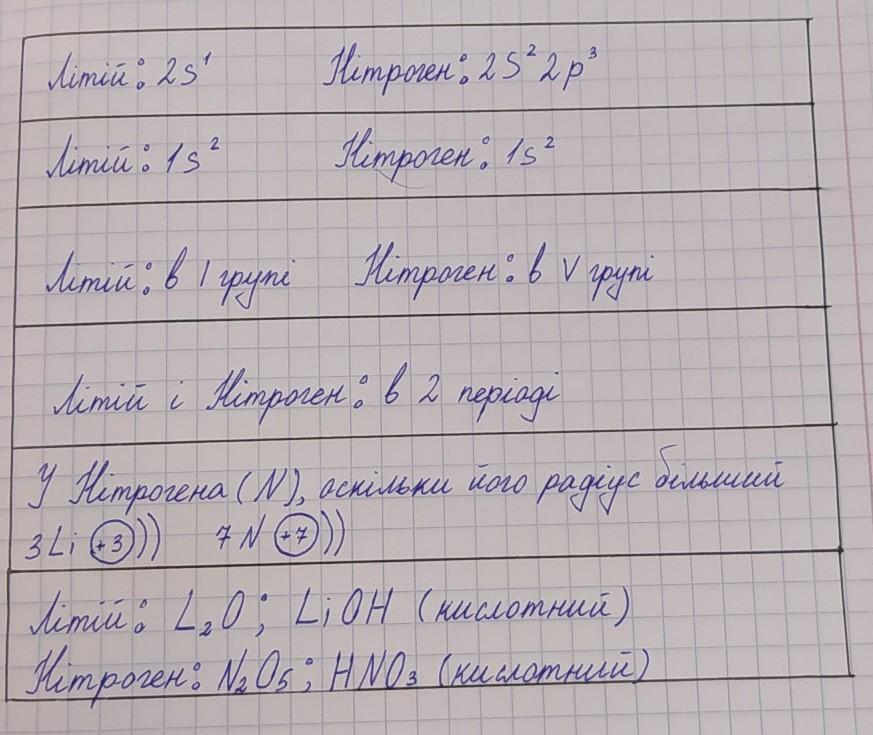 СДЕЛАЙТЕпожалуйста табличку ЛИТИЙ И НИТРОГЕН ДАЮ 190 БАЛОВ