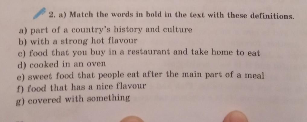 г) приготована в духовці д) солодка їжа, яку люди їдять після основної частини їжі