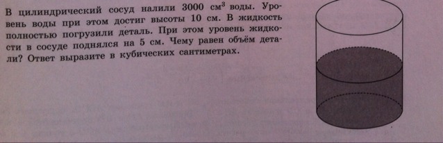 В цилиндрический сосуд налили 3000см^3 воды. Уровень воды при этом достиг высоты 10см. Продолжение на фото...