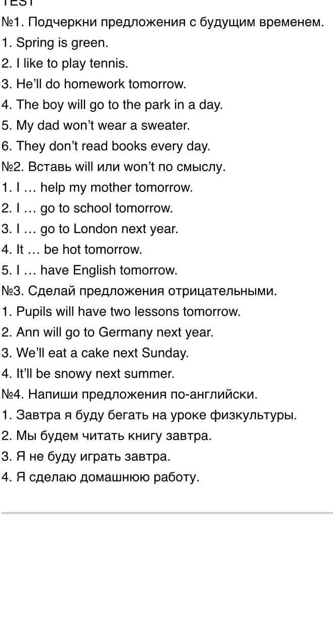2). Спорное задание, так как нет контекста , а соответственно может быть и will и wont
