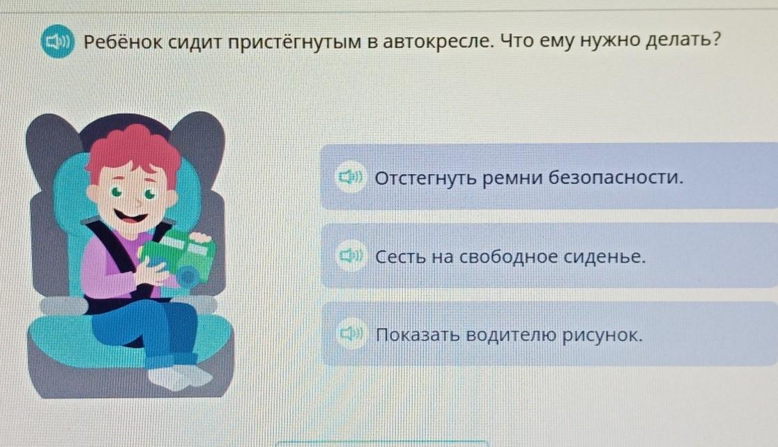 помогите, срочно. Ребёнок сидит пристегнутым в автокресле, что ему нужно сделать?