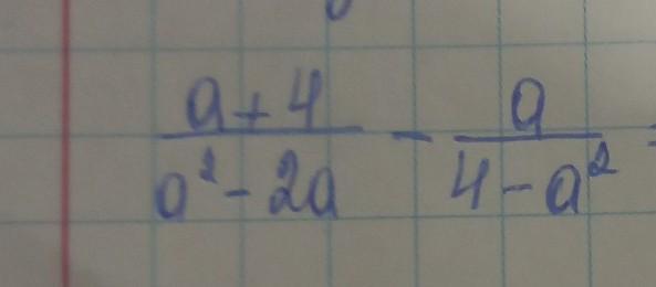 \displaystyle\bf\\\dfrac{a+4}{a^{2} -2a} -\dfrac{a}{4-a^{2} } =\dfrac{a+4}{a(a-2)} +\dfrac{a}{(a-2)(a+2)} =\dfrac{(a+2)(a+4)+a\cdot a}{a(a-2)(a+2)} =\\\\\\=\dfrac{a^{2}+4a+2a+8+a^{2}  }{a(a-2)(a+2)} =\dfrac{2a^{2}+6a+8 }{a(a-2)(a+2)} =\dfrac{2(a^{2}+3a+4) }{a(a^{2} -4)}