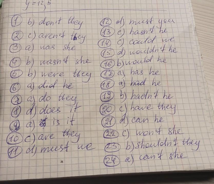 The boys aren’t in the work, … ? aren’t the boys b) aren’t they c) are they d) are we