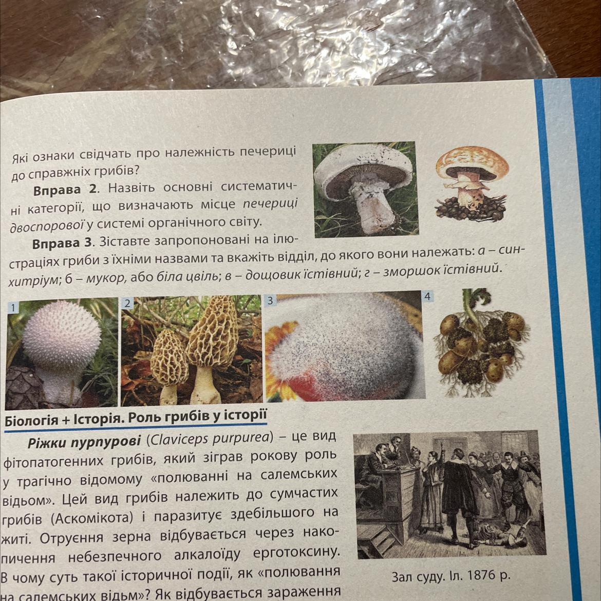 • а – 4 (отдел: хитридиомицеты), б – 3 (отдел: мукоромицеты), в – 1 (отдел: базидиомицеты), г – 2 (отдел: аскомицеты)