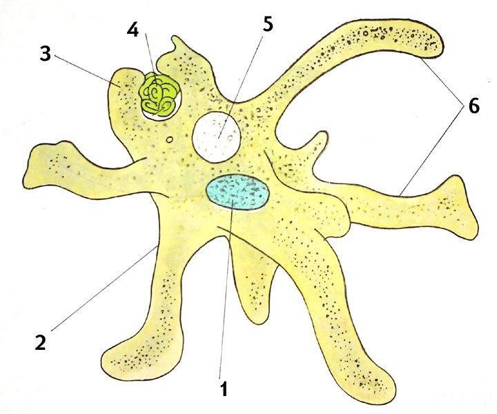 кл. мембрана, травна вакуоля, скоротлива вакуоля, цитоплазма, ядро, несправжні ніжки.