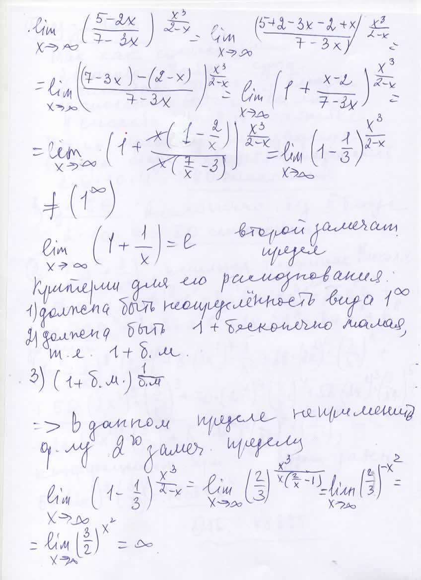 Применима ли в данном пределе формула второго замечательного предела? Вычислите предел с полным обоснованием решения: