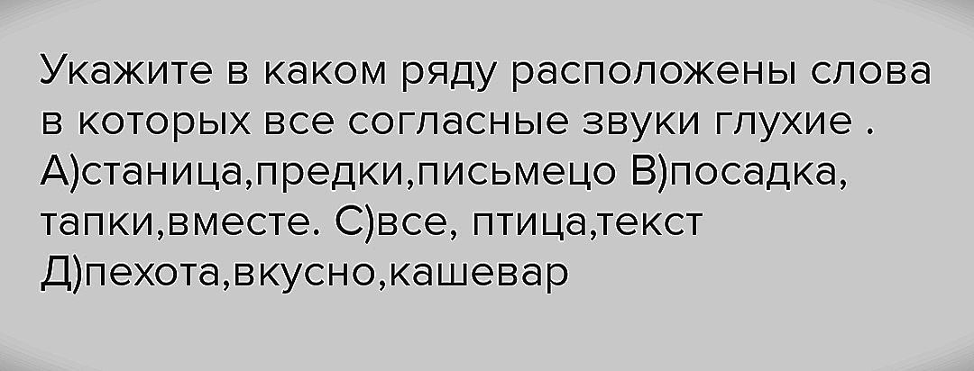 Укажем ряд в котором ряду расположены слова в которых все согласные звуки глухие: