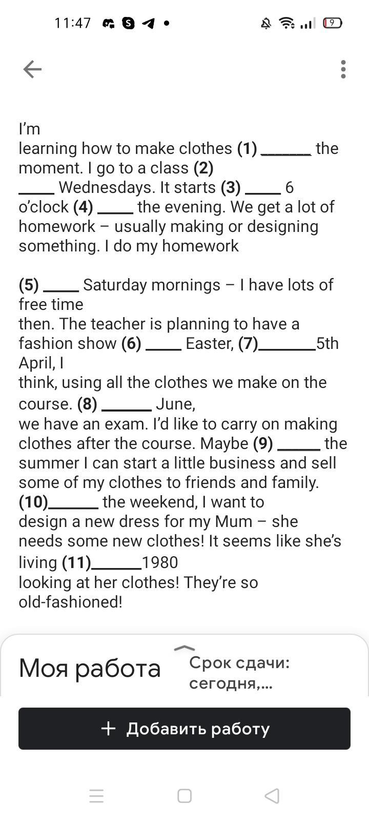 1-at 2-on 3-at 4-in 5-on 6-on 7-on 8-in 9-in 10-at 11-in