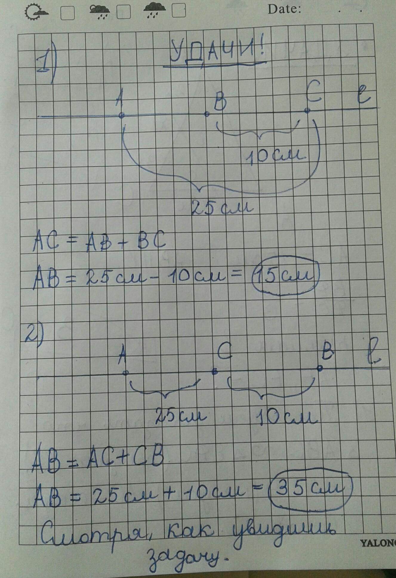 первый случай: АВ = 15 см, второй случай: АВ = 35 см.