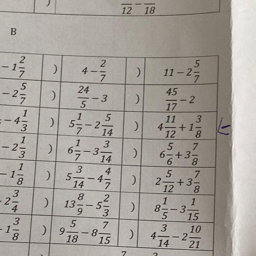 4 - 2/7 = 3. 7/7 - 2/7 = 3. 5/7
