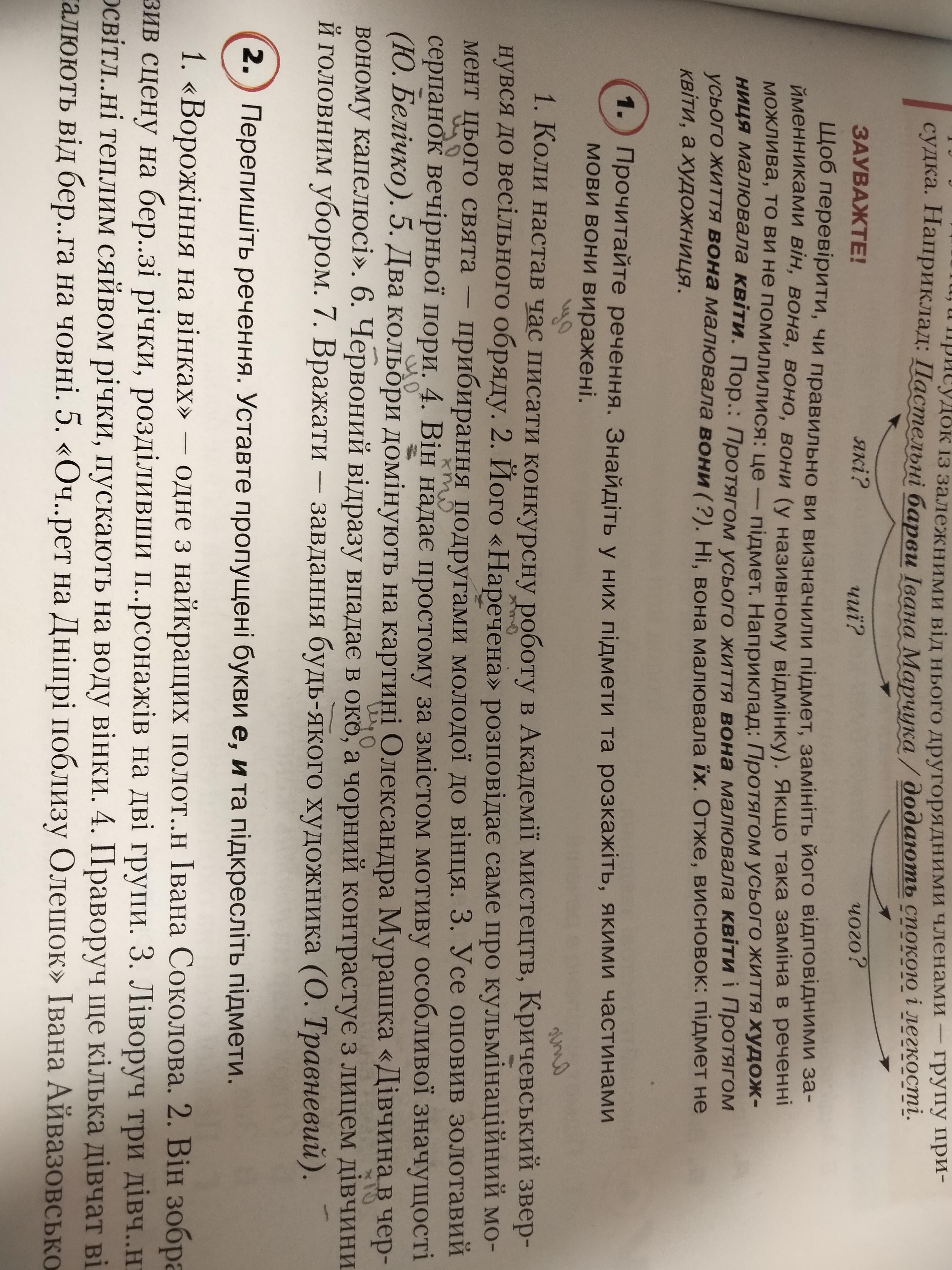 подставляй под слова вопросы (хто?що?) -підмет