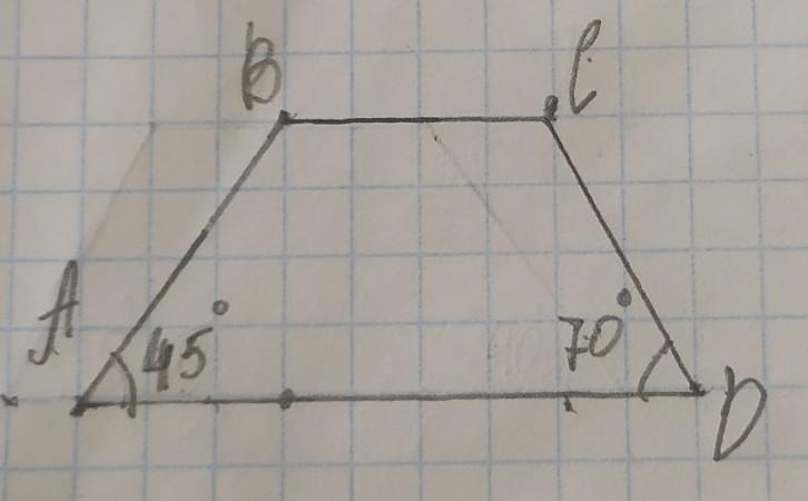 сума кутів прилеглих до однієї сторони дорівнює 180° кут B=180°-45°=135° кут C=180°-70°=110°