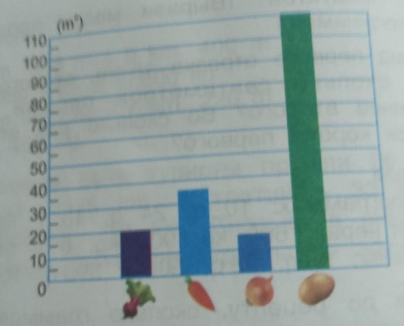 В 3. На огороде высажены свёкла, морковь, лук и картофель. На диаграмме показана площадь, занятая посаженными поле культурами. Используя эту диаграмму, определи площадь земли, отведённой под каждую культуру, и общую площадь поля: сделайте Плис диаграмма на фото
