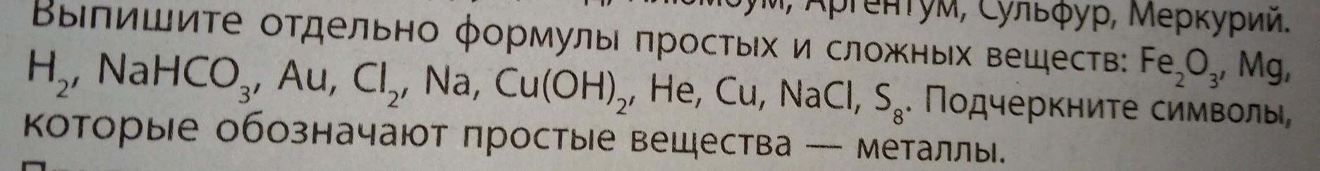 Mg, H2, Au, Cl2, Na, He, Cu, S8 металлы