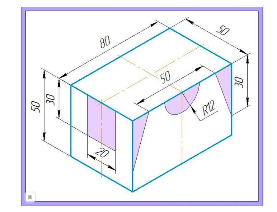 Выполните чертеж детали,у которой вырезаны части по нанесенной разметке. В трех проекциях и наглядное изображение. Даю 50 баллов