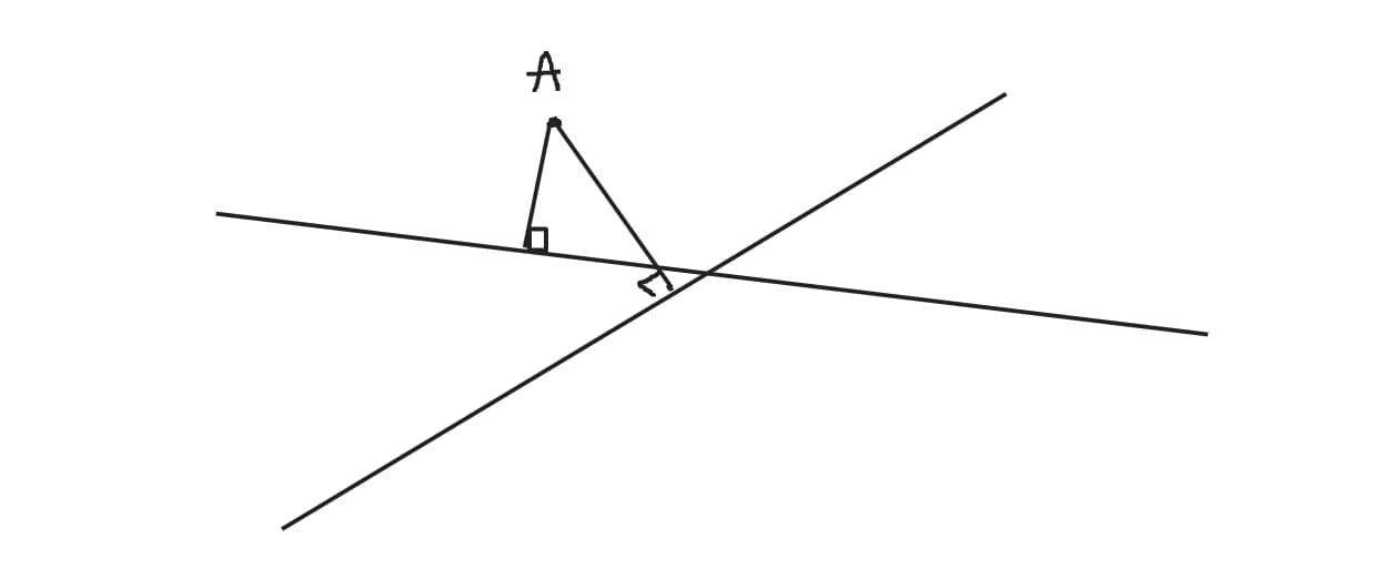 Побудуй дві прямі, що перетинаються . Постав точку А,яка не належить жодній прямій . За допомогою косинця побудуй перпендикуляри з точки А до кожної з прямих