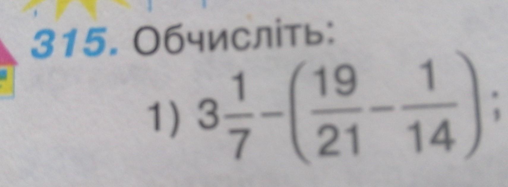 3 1/7 - (19/21 - 1/14) = (3 + 1\/7) - (19\/21 - 1\/14) = 97\/42