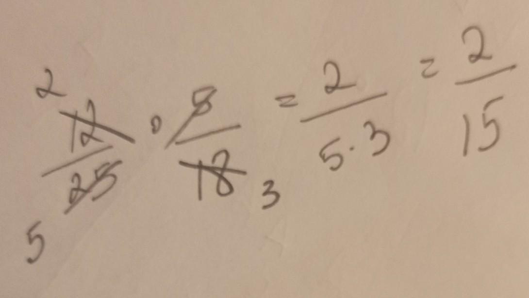 Сокращаем:12/25×5/18=2/5×1/3=2/15