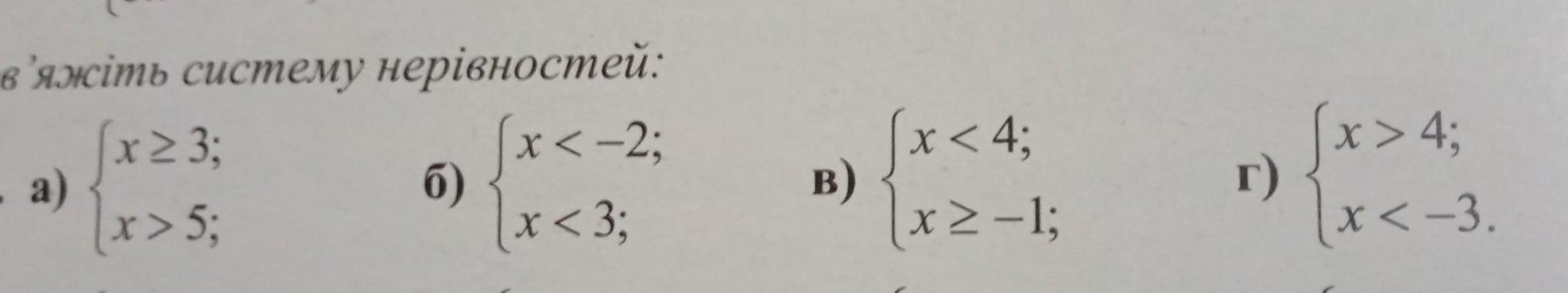 Делаешь на прямой точки, и рисуешь полосочки согласно условию, < - лево, > - право (точка, внутри которой дырка). Если ≥ или ≤ тоже самое только обычные точки. Скобка ( ) если <, > и [ ] если ≥, ≤.
